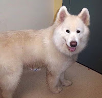 In mid-November Melissa received a call from a woman who wanted us to find a new home for her Sammy boy, Dakota. Her house had been foreclosed and she was moving in with her daughter, whose apartment did not permit dogs. Then she mentioned that he bit a child who was trick-or-treating on Halloween. Our policies are very firm on bites, and we can’t take a dog with a bite history. The dog was dropped off at the Troutdale shelter, where she gave a different story, then transferred to the Southwest Washington Humane Society in Vancouver. Both shelters contacted us, and both were told about the bite for the first time.